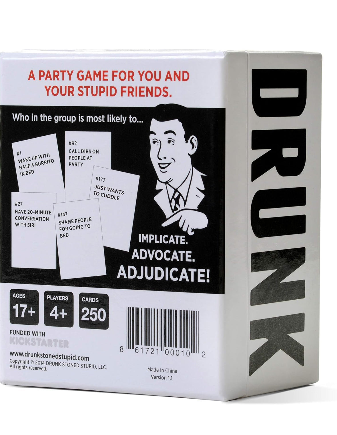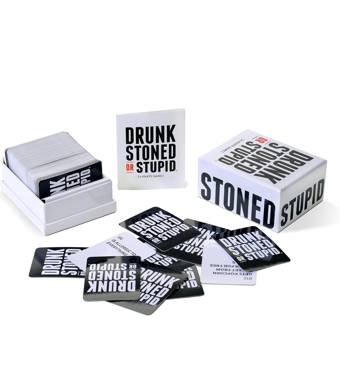 Drunk Stoned or Stupid is a judgment-based party game that calls out your friends — literally. Players draw a card and decide who in the group best fits the prompt. With cards like “would text their ex while drunk,” this game is brutally honest and ridiculously fun.