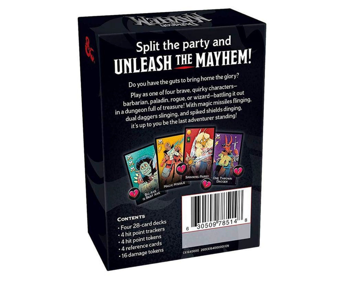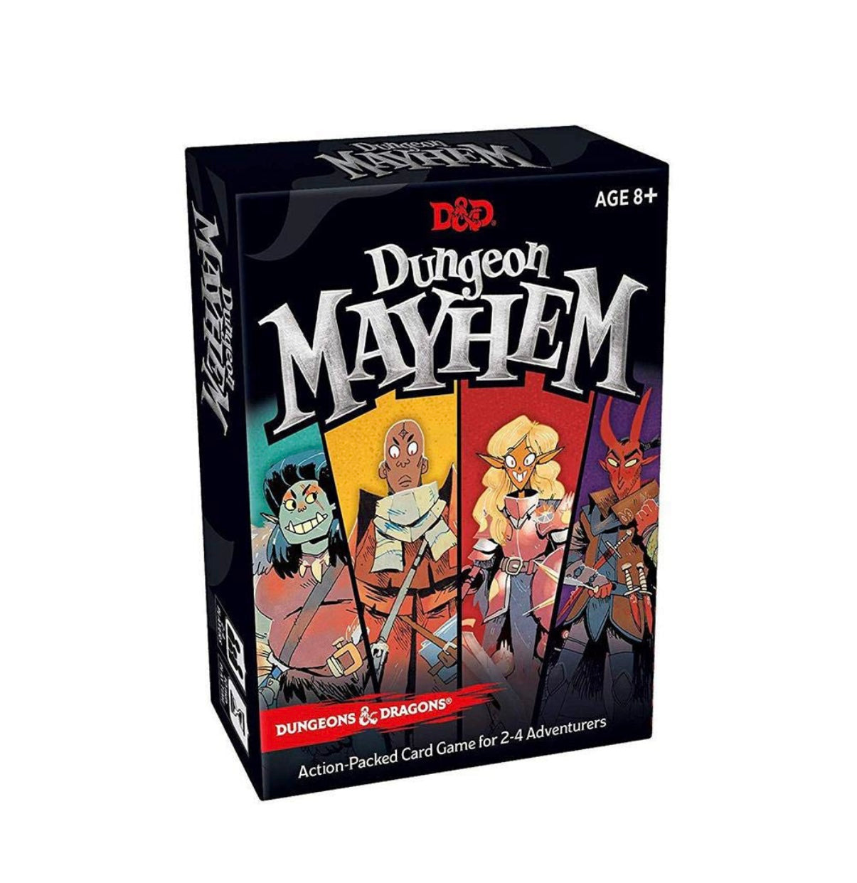 Step into the dungeon for a lighthearted fight to the finish in Dungeon Mayhem, the Dungeons & Dragons card game of epic brawls and hilarious reversals. Choose your character, from sneaky rogues to fierce barbarians, each with a unique deck and play style. Then, use your powers, treasures, and a bit of mischief to outwit and outlast your opponents.