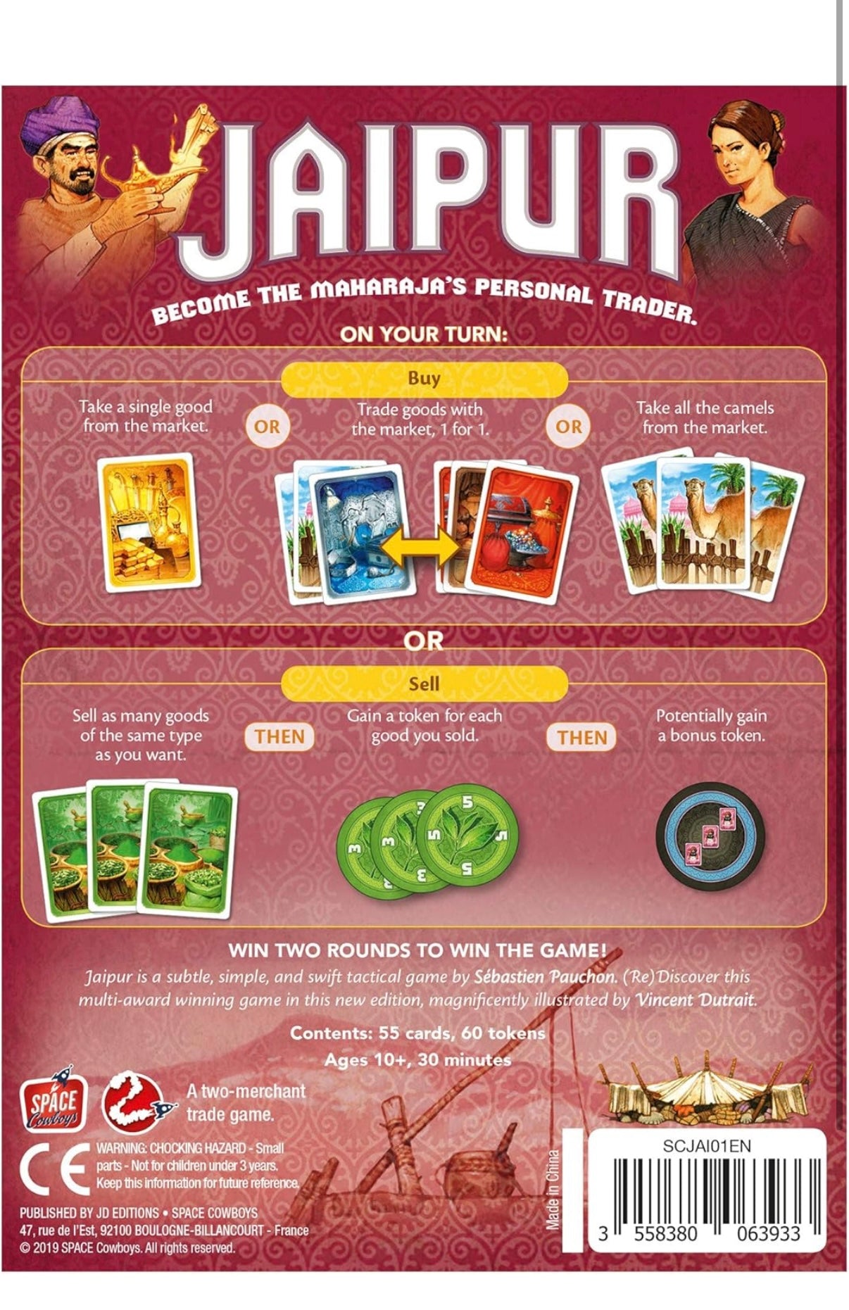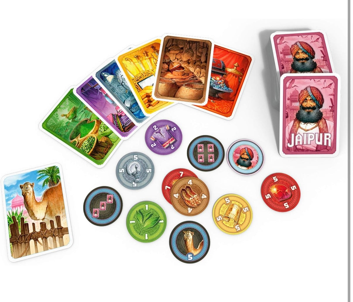 Step into the bustling markets of Jaipur, where two elite traders compete for riches and royal favor. In this fast-paced card game, you’ll buy, exchange, and sell goods—like silk, spices, and gems—to outsmart your rival and earn the Maharaja’s invitation to court.
