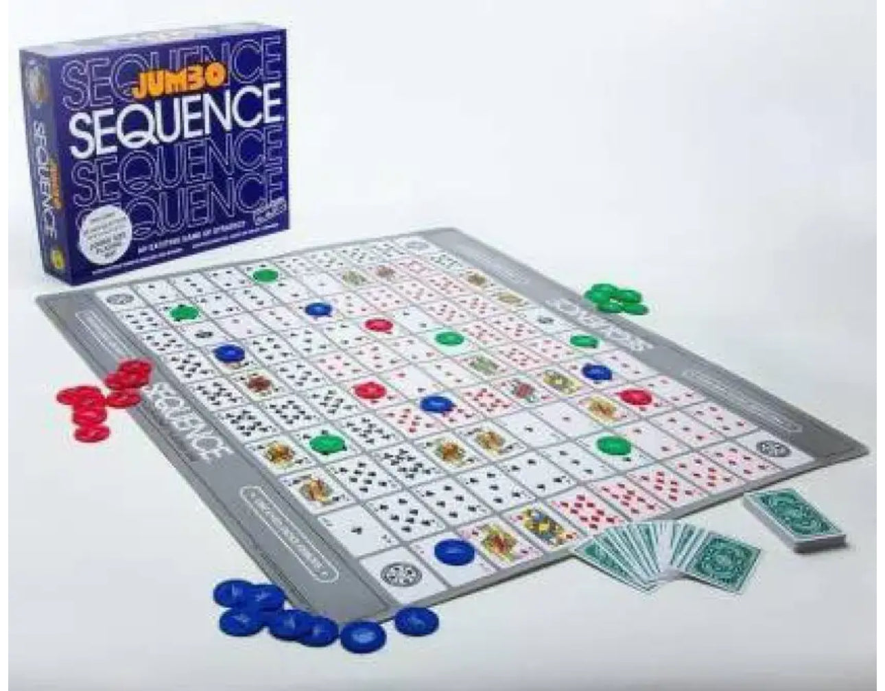 Play your favorite strategy card game in jumbo size! Jumbo Sequence features an oversized game mat and easy-to-handle playing chips, making it perfect for parties, family game nights, or outdoor fun. Match cards, build sequences, and block your opponents in this exciting race to win!