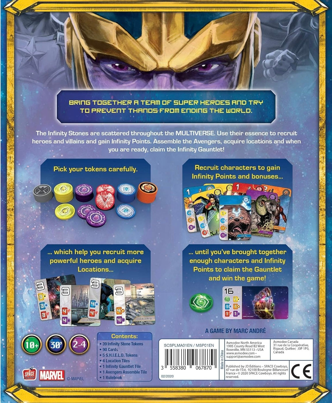 Step into the Marvel Universe in this epic reimagining of the award-winning game Splendor. In Splendor: Marvel, you’re not just collecting gems - you’re recruiting iconic heroes, villains, and allies from across the multiverse to gather the six Infinity Stones before your rivals do.