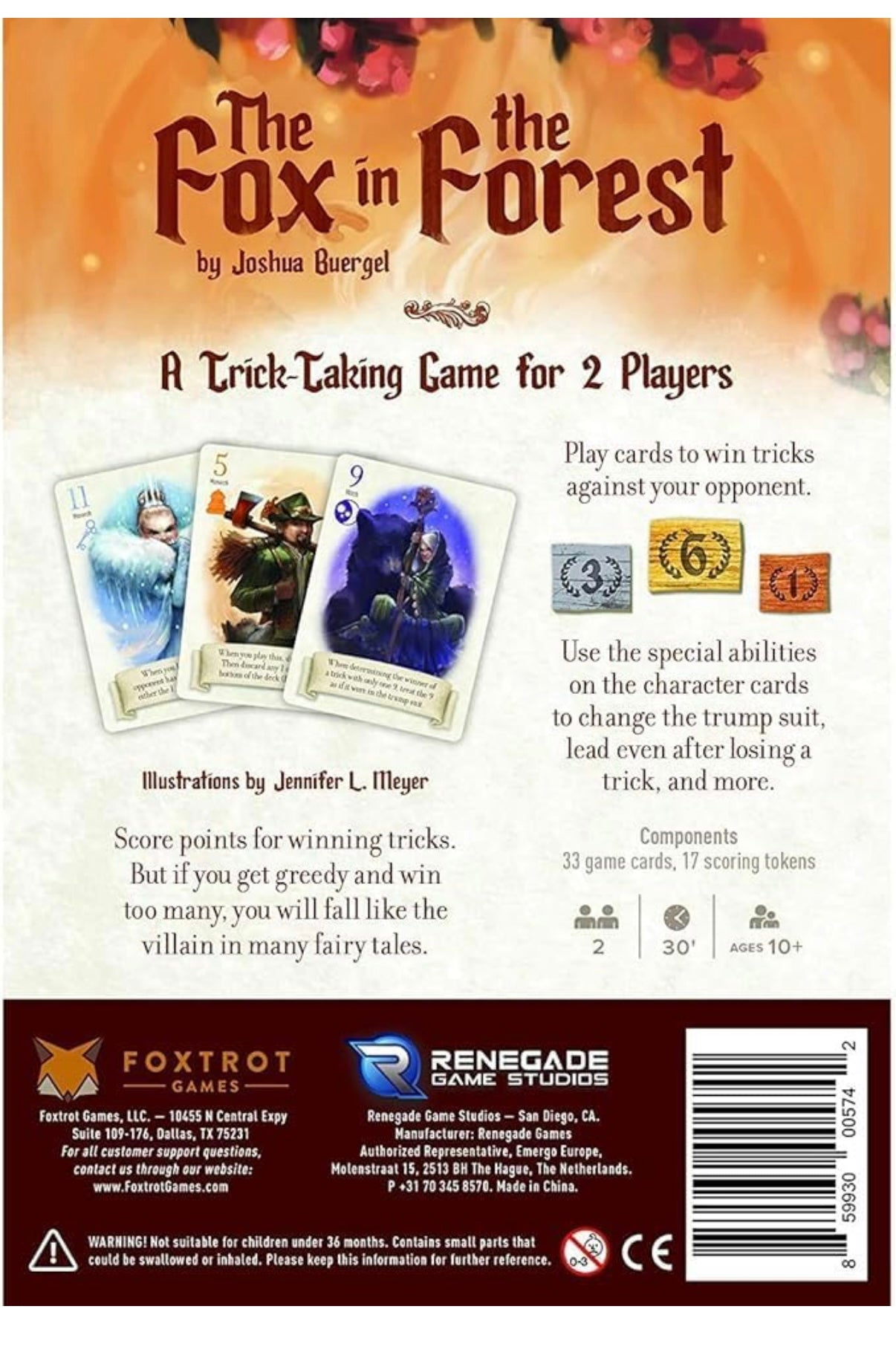 The Fox in the Forest is a beautifully illustrated, strategic card game designed especially for two players. Take turns playing tricks, using unique character abilities to gain an edge but be careful. Winning too many tricks can cost you the game.