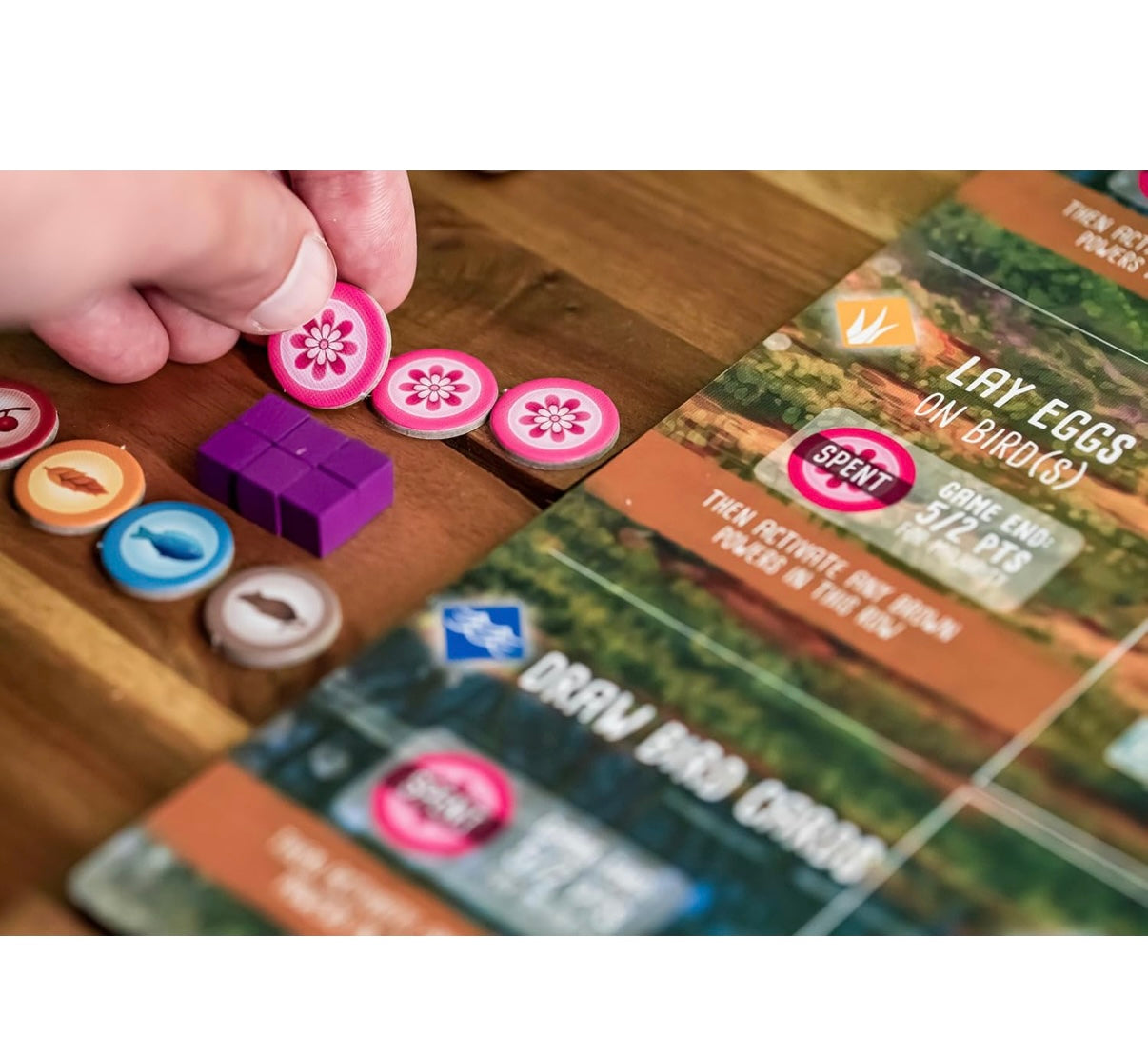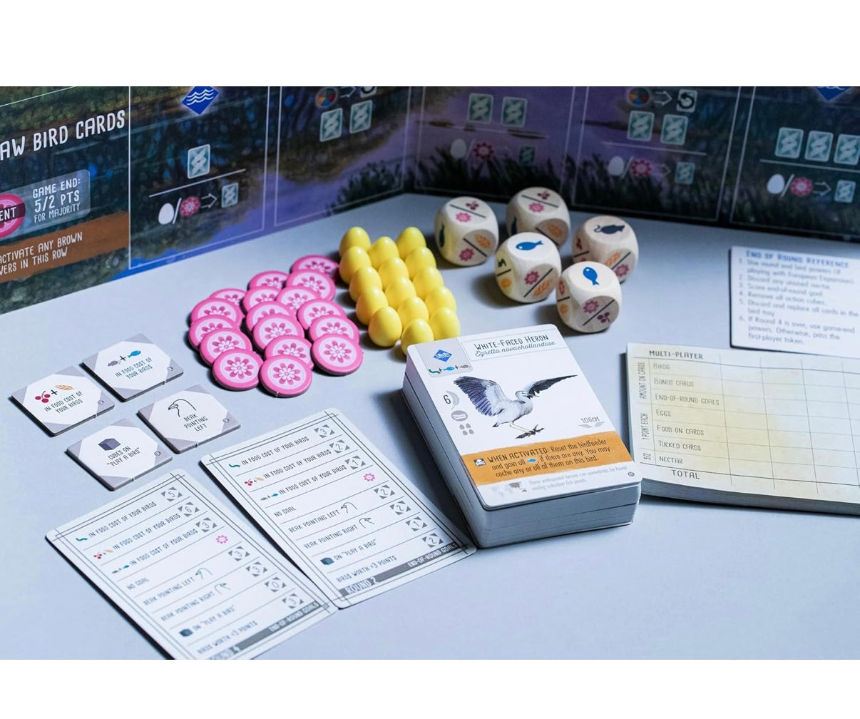 This expansion also includes a new player board, nectar as a new food type, and rebalanced core mechanics that offer exciting new ways to build your habitats and score points.